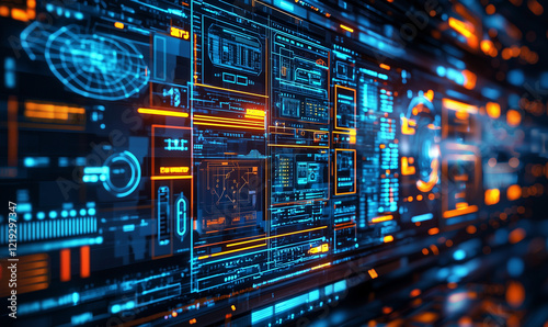 Fototapeta premium Dynamic data visualization and analysis digital environment infographic content futuristic tech display aerial perspective artificial intelligence innovation
