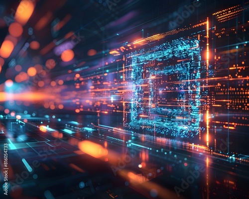 Obraz premium Dynamic Digital Art Frame with Sleek Black Border Futuristic Neon Lights and...
