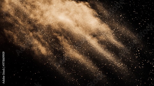 © sanntoru, Obraz premium Dynamic Digital Art of a Dust Cloud with Sand Particles on Black Background – Evoking an Underwater Explosion Effect
