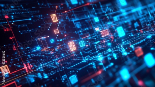 Obraz premium Dynamic digital data flow virtual environment 3d visualization technology...