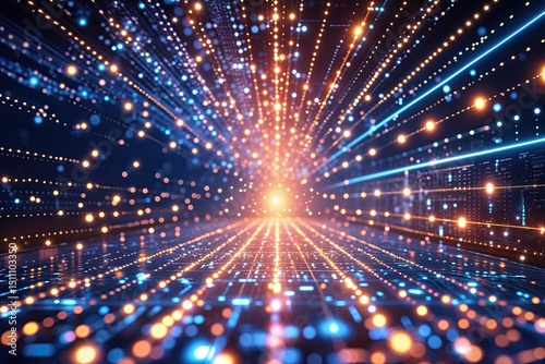 © Michael, Fototapeta premium Dynamic Digital Energy Field Background with Glowing Lights and Abstract Tech Elements
