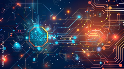 © touseef, Obraz premium Dynamic digital tech background: illustration of internet, computer software, hardware, programming, data network - futuristic digital landscape for technology concepts