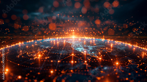Obraz premium dynamic digital world map emphasize Western Europe continental for AI powered...