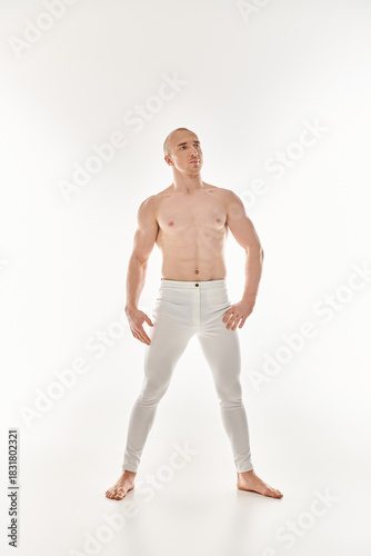 Fototapeta premium Dynamic display of acrobatics in a minimalist studio setting