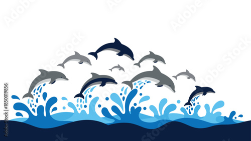 © Ophelia, Fototapeta premium Dynamic dolphin leap in playful ocean waves