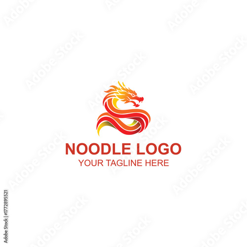 Fototapeta premium Dynamic Dragon Noodle Logo Coiled S Shape Symbol Fiery Red Orange Gradient Creative Illustration