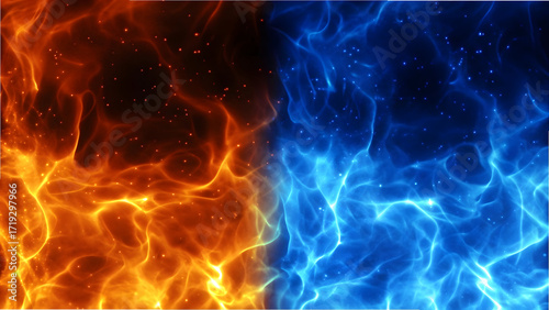 Obraz premium Dynamic Duality: Abstract Red and Blue Fire Energy Background. Vibrant...