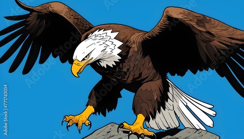 Obraz premium Dynamic Eagle Cartoon on Blue Sky
