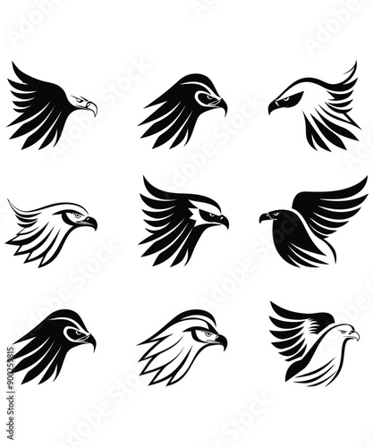 Obraz premium Dynamic eagle logo design illustration, Aggressive Eagle or hawk set logo silhouette vector icon