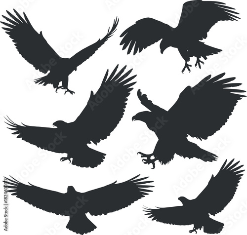 Obraz premium Dynamic Eagle Silhouette Collection Featuring Majestic Birds of Prey in Flight