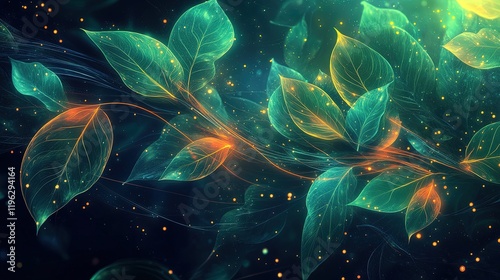 © Oleg Kuzma, Obraz premium Dynamic eco theme with glowing abstract lines and vibrant foliage textures