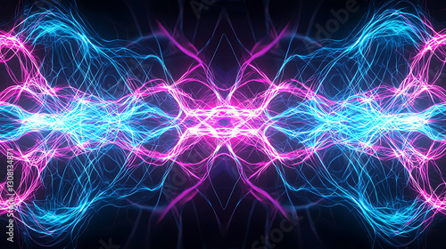 © AI Background , Fototapeta premium Dynamic electric waves digital space abstract art vibrant colors symmetrical design energy concept