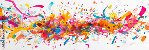 Fototapeta premium Dynamic explosion of colors with ribbons, splashes, and particles on white, vibrant and playful