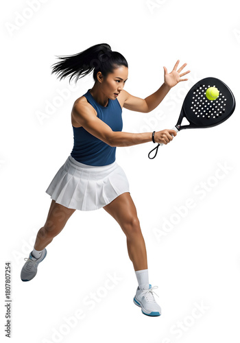 © Niko, Naklejka premium Dynamic female athlete playing padel, transparent background