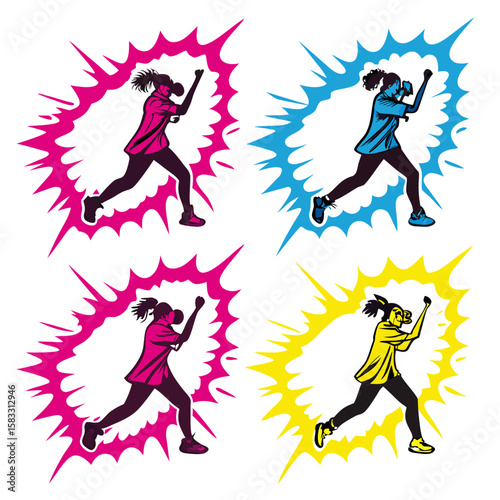 Fototapeta premium Dynamic female athletes in action bursts pink