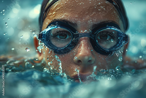 Fototapeta premium Dynamic Female Marathon Swimmer Executing Powerful Stroke in Aquatic...