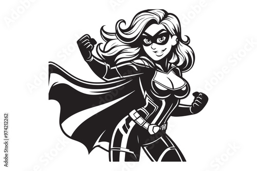 © Nasir, Fototapeta premium Dynamic Female Superhero Silhouette Vector Art in Black