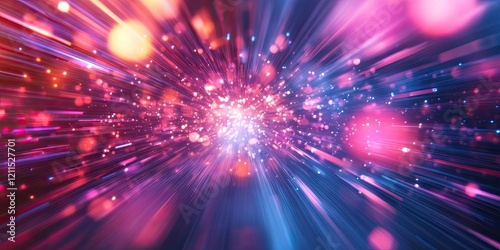 © Levan, Fototapeta premium Dynamic festive background with blurred vibrant pink and blue lights radiating outward providing ample space for text and holiday themes