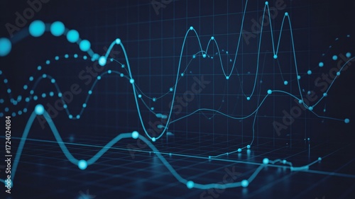 © DrexDesign, Naklejka premium Dynamic financial charts showing growth trends on a dark digital display