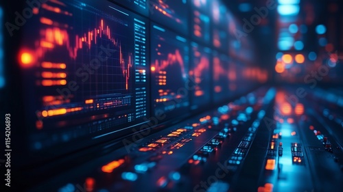 Obraz premium Dynamic Financial Data Visualization in a High-Tech Trading Environment