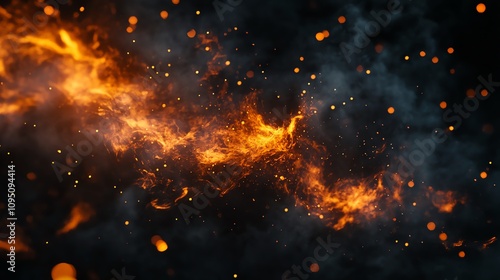 Fototapeta premium Dynamic fire swirl with bright orange flames and glowing embers against a...