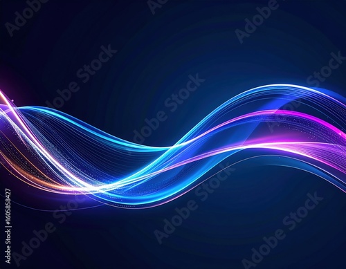 © lalala, Naklejka premium Dynamic Flow Abstract Neon Waves on Dark Blue Background Modern Art.