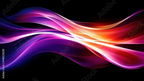 Fototapeta premium dynamic flowing waves of pink purple and orange light blending smoothly on a black background