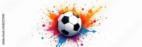 © Yho Stock, Fototapeta premium Dynamic Football Explosion of Colors Backdrop