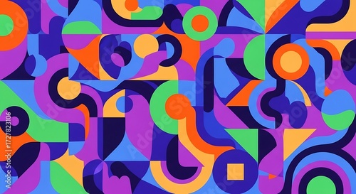 © siti, Obraz premium Dynamic geometric shapes create a vibrant and modern background with a retro feel perfect for creative projects and eye-catching designs