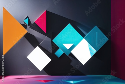 Fototapeta premium Dynamic Geometric Shapes with Dark Background and 3D Light Refraction