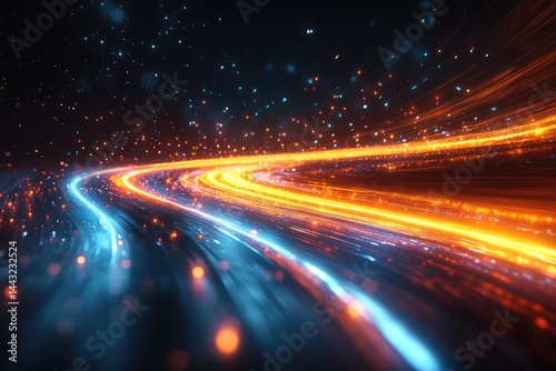 Obraz premium Dynamic, glowing lines curve through a cosmic space.