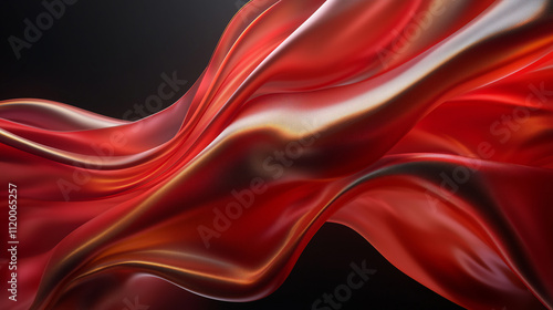 © Vitaliy, Obraz premium Dynamic golden and red silk wave with smooth flowing texture, abstract 3D rendering, luxury motion concept, elegant design, modern metallic finish, dark copy space.