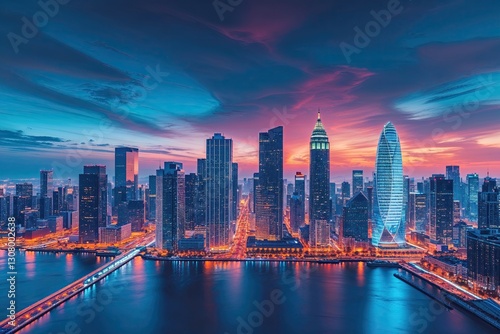 © Michael, Fototapeta premium Dynamic Gradient Cityscape Background for Eye-Catching Website Banner Design
