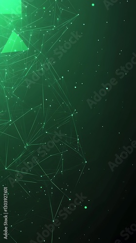 Fototapeta premium Dynamic green digital background with geometric shapes and connections