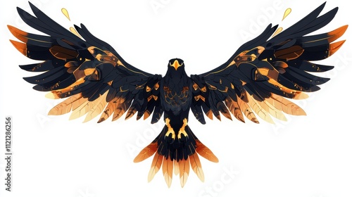 © นัสรีน ถนอมวงศ์, Fototapeta premium Dynamic hawk in flight natural habitat wildlife illustration vibrant environment aerial view