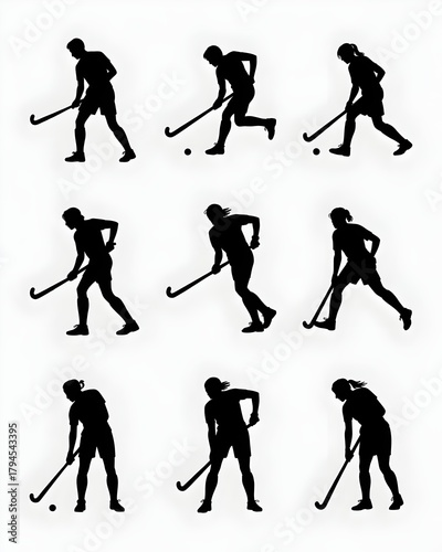 Obraz premium Dynamic Hockey Silhouette: A captivating pattern of hockey players in action, rendered in striking silhouettes, showcases the energy and skill of the game.