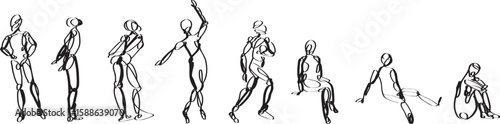 © zhurata, Fototapeta premium Dynamic Human Figure Sketches in Various Poses