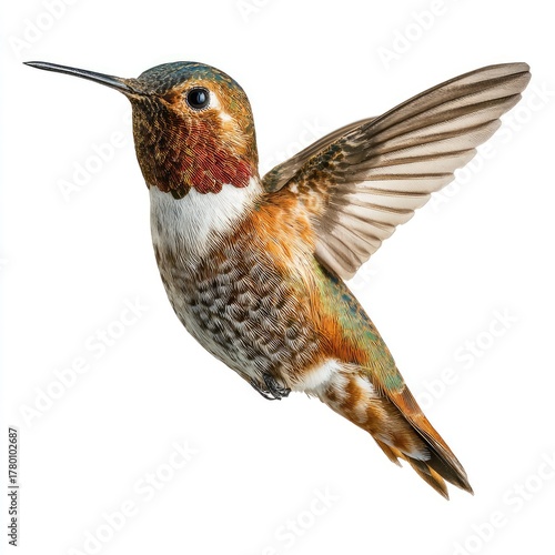 Fototapeta premium Dynamic hummingbird in flight nature setting hyperrealistic photography gigapixel detail close-up view avian beauty
