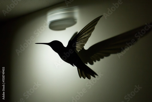 Obraz premium Dynamic hummingbird shadow evoking movement and springtime energy.