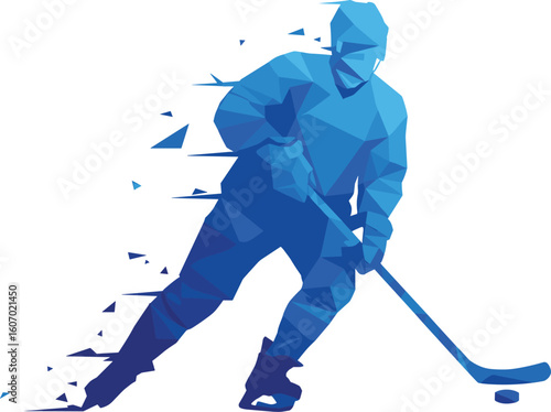 Fototapeta premium Dynamic Ice Hockey Player Low Poly Vector Art with Motion Blur Effect,...