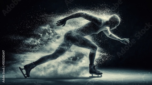 © 2D_Jungle, Fototapeta premium Dynamic ice skating performance indoor arena action photography dark environment athlete in motion sport and art fusion