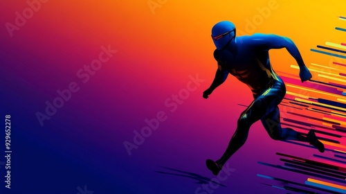 Naklejka premium Dynamic illustration of a runner in motion, showcasing energy and speed against a vibrant gradient background.