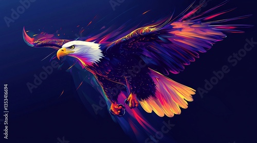 Obraz premium Dynamic illustration of a soaring american bald eagle with vibrant colors