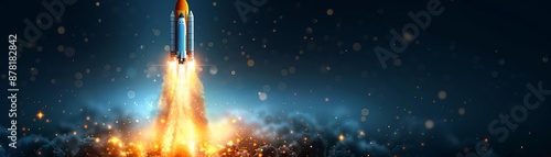 Fototapeta premium Dynamic image of a rocket launch with vibrant flames and smoke, capturing the...
