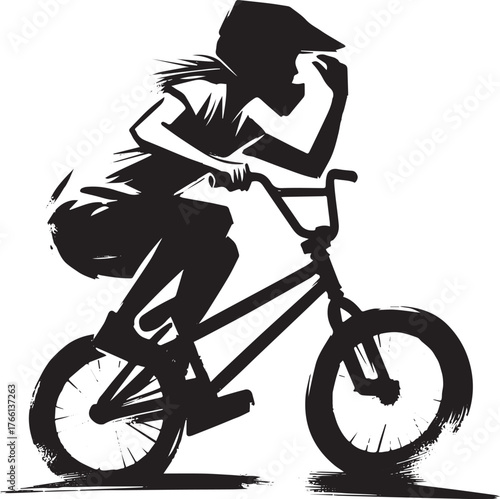Fototapeta premium Dynamic Ink Illustration: Female BMX Athlete in Action Silhouette Portrait