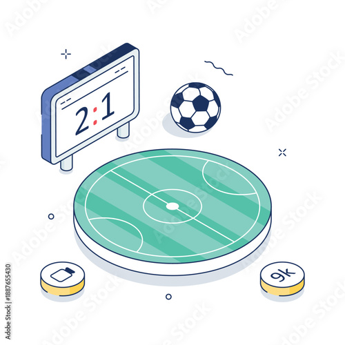 © CreativeStudio, Naklejka premium Dynamic isometric illustration representing soccer match, football ground