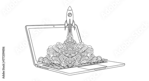 Fototapeta premium Dynamic launch from laptop, showcasing innovation, technology, startup...