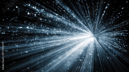 Fototapeta premium Dynamic Light Burst with Radiant Particles in Dark Background