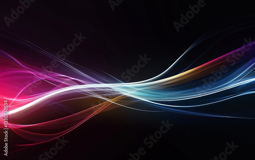© SERGEI, Naklejka premium Dynamic light lines on a dark background.