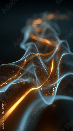 © YoursTrulyPhotos, Obraz premium Dynamic light shapes background with bright luminous glowing lines forming fluid motion and depth through 3d rendering creating a futuristic abstract design ideal for modern digital visuals